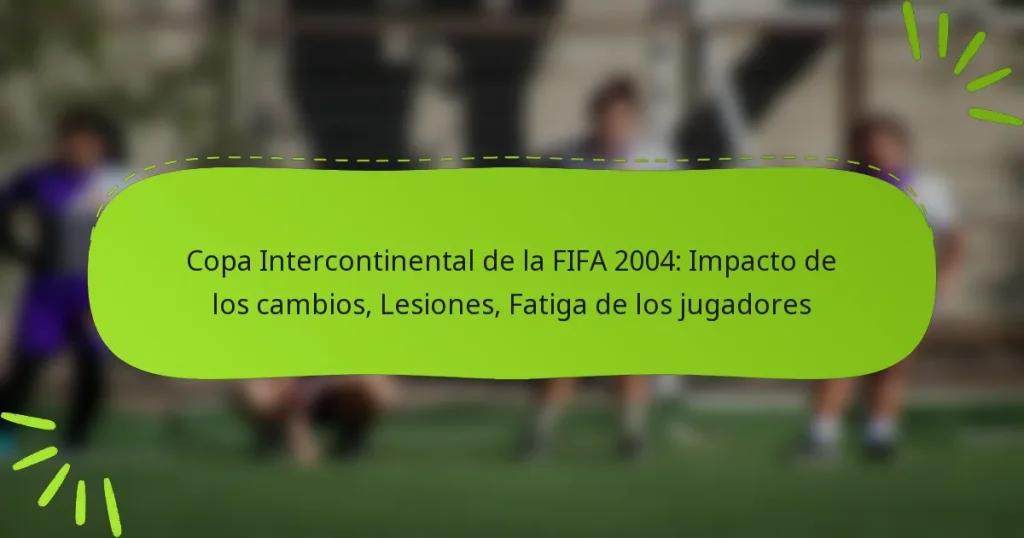 Copa Intercontinental de la FIFA 2004: Impacto de los cambios, Lesiones, Fatiga de los jugadores