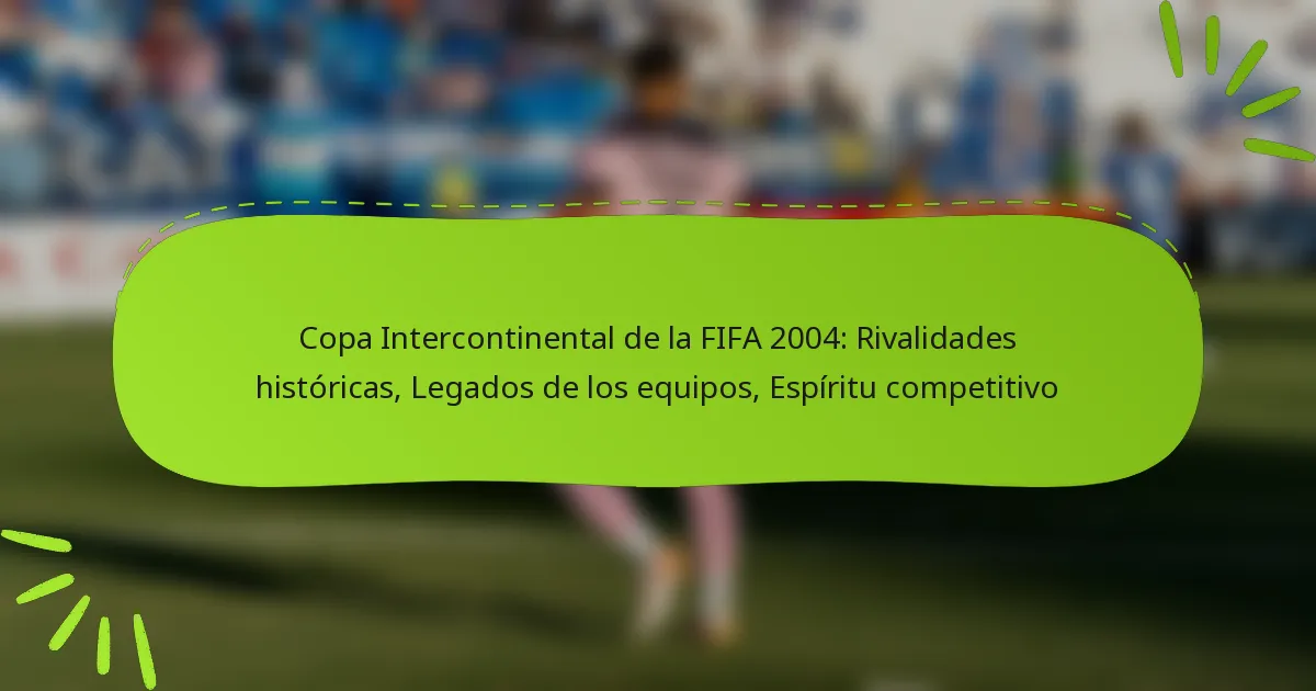 El espíritu competitivo de la Copa Intercontinental de la FIFA 2004 se caracterizó por intensas rivalidades, goles inolvidables y batallas tácticas que mostraron lo mejor del fútbol de clubes. Este torneo no solo destacó los legados de los equipos participantes, sino que también involucró a aficionados apasionados, creando momentos emocionales que resonaron mucho después de que concluyeron los partidos.
