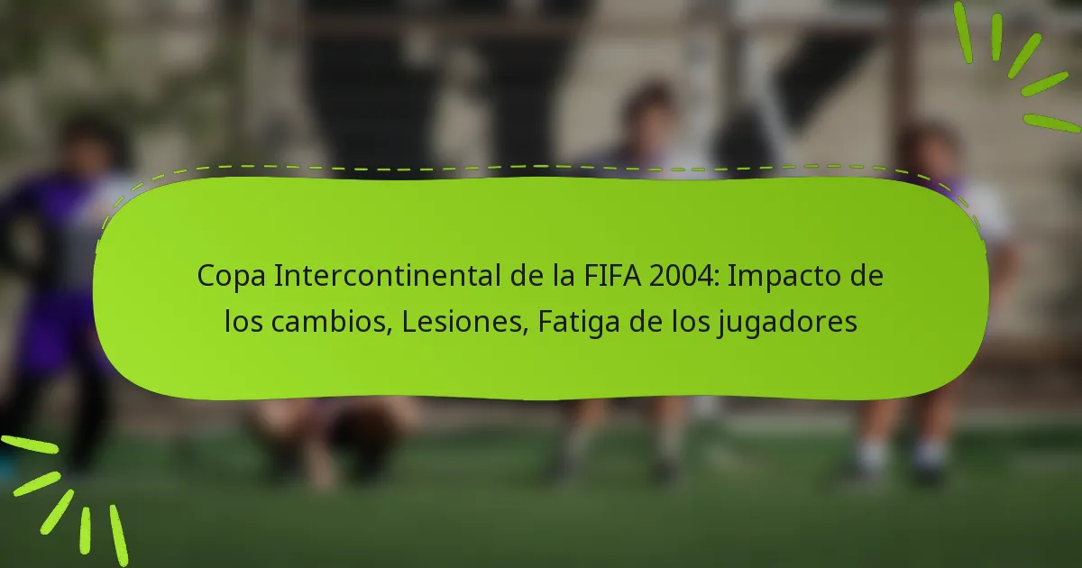 Los efectos a largo plazo de las sustituciones, lesiones y fatiga en los equipos durante la Copa Intercontinental de la FIFA 2004 influyeron significativamente en su rendimiento, carreras de los jugadores y estrategias para futuros torneos. Estrategias de sustitución efectivas ayudaron a gestionar la fatiga de los jugadores y mitigar los impactos de las lesiones, mientras que las lecciones aprendidas moldearon las preparaciones del equipo subsecuentes.