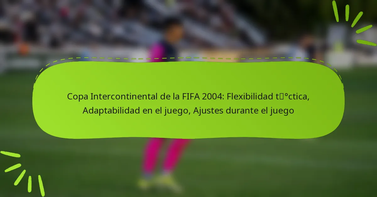 Las estrategias de los entrenadores para los ajustes durante el juego en la Copa Intercontinental de la FIFA 2004 involucraron una combinación de flexibilidad táctica y toma de decisiones en tiempo real. Los entrenadores utilizaron el análisis previo al partido para preparar a sus equipos, pero la capacidad de adaptar estrategias según los escenarios del partido fue crucial para el éxito.