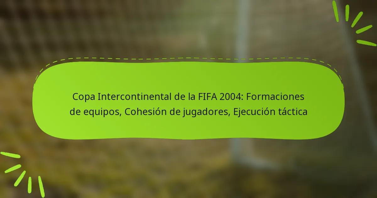 Examinar equipos ganadores de la Copa Intercontinental de la FIFA 2004 revela cómo las formaciones efectivas y la cohesión entre los jugadores contribuyen al éxito. Los campeones utilizaron efectivamente una formación 4-4-2, demostrando una fuerte organización defensiva y rápidas transiciones al ataque, lo que abrumó a sus oponentes.